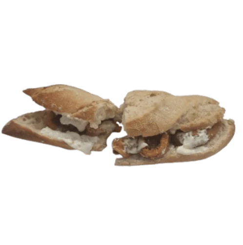 Nuestro bocadillo de Calamares a la Andaluza es un festín para los sentidos: crujiente baguette de pan envuelve los delicados y dorados calamares a la andaluza, realzados con la suavidad de la mayonesa y un toque fresco de limón que despierta cada bocado. Una experiencia marina con carácter, perfecta para quienes buscan sabor y tradición en cada mordisco.