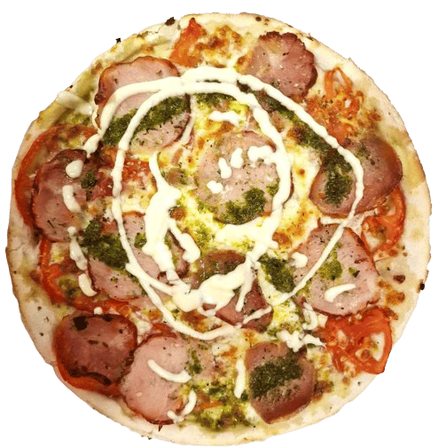 Sabor de pueblo con alma gourmet. La Pizza Porky’s une el frescor del tomate natural con el fundido suave del queso mozzarella, el inconfundible sabor del lomo de orza tradicional, el carácter vibrante de la salsa verde (picaeta) y la cremosidad atrevida del ali-oli. Todo coronado con un suspiro de orégano. Rústica, intensa y simplemente deliciosa.
