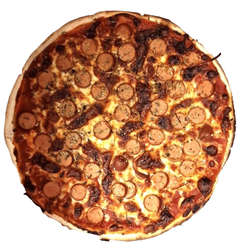 Una pizza pensada para quienes disfrutan del sabor auténtico y sin artificios: base de tomate fresco, cubierta con generoso queso mozzarella fundido y acompañada de salchichas Frankfurt jugosas que aportan ese toque clásico y sabroso. Todo ello coronado con un delicado toque de orégano que redondea cada bocado.